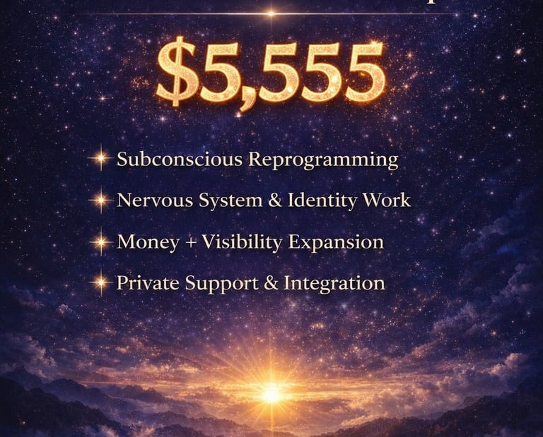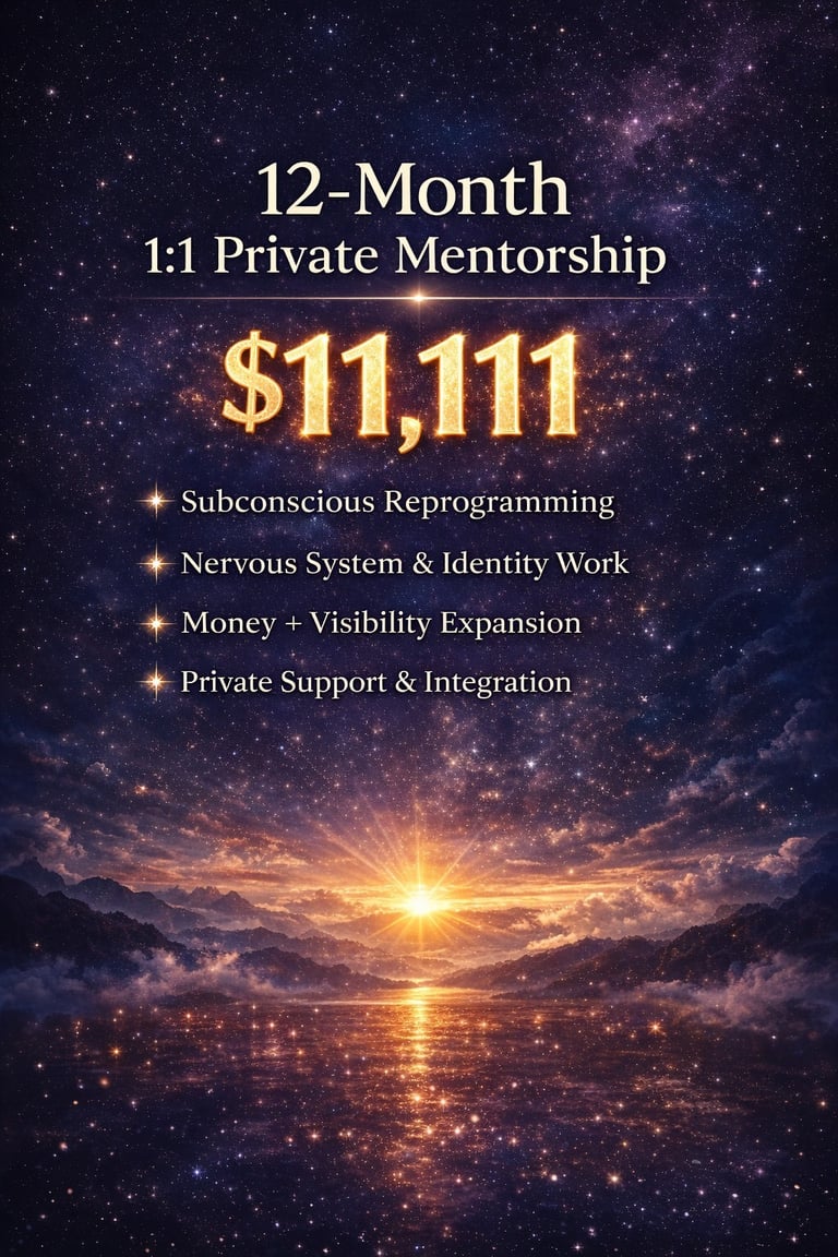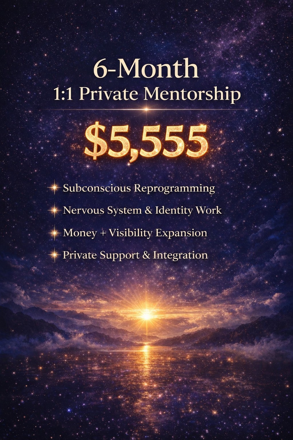 Long-term, 1:1 mentorship containers designed for deep subconscious reprogramming, nervous system regulation, and embodied expansion.
